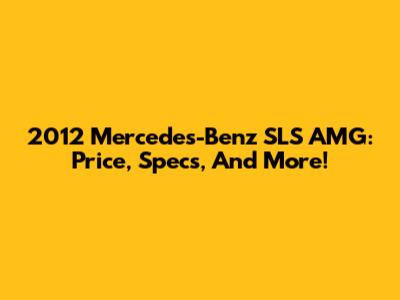 2012 Mercedes-Benz SLS AMG: Price, Specs, And More!