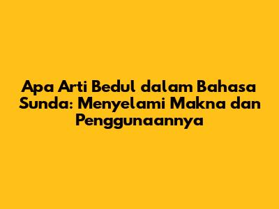 Bedul, sebuah kata dalam bahasa Sunda, seringkali menimbulkan rasa penasaran bagi mereka yang baru pertama kali mendengarnya. Apa sebenarnya arti bedul? Dalam artikel ini, kita akan membahas secara mendalam mengenai makna, penggunaan, serta contoh kalimat yang menggunakan kata bedul dalam konteks bahasa Sunda. Yuk, simak penjelasannya!