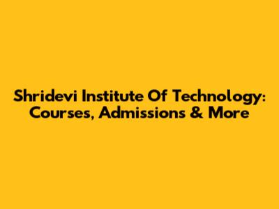 Shridevi Institute Of Technology: Courses, Admissions & More