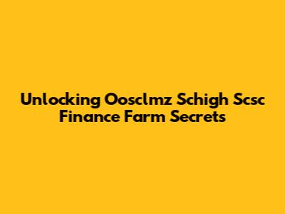 Unlocking Oosclmz Schigh Scsc Finance Farm Secrets