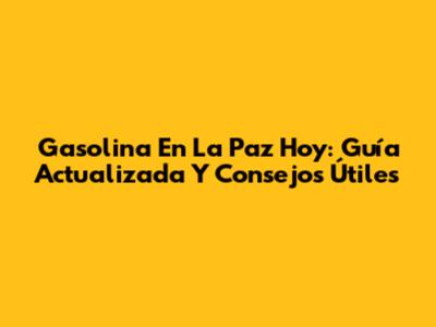 Gasolina En La Paz Hoy: Guía Actualizada Y Consejos Útiles
