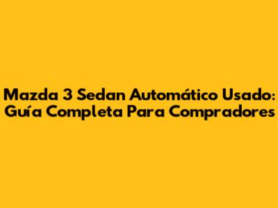 Mazda 3 Sedan Automático Usado: Guía Completa Para Compradores