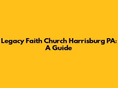 Hey guys! Ever heard of Legacy Faith Church in Harrisburg, PA? If you're looking for a church home, or just curious about what makes this place tick, you've come to the right spot. We're gonna dive deep into everything Legacy Faith has to offer, from its mission and values to its community impact. So, grab a cup of coffee (or tea, no judgment here!), and let's explore what makes this church a special place in the heart of Harrisburg. Let's start with a big picture of what Legacy Faith Church in Harrisburg, PA is all about.