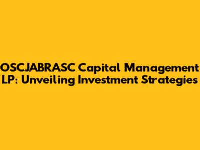 OSCJABRASC Capital Management LP is a financial firm that specializes in managing capital. They help individuals, institutions, and other entities to invest their money wisely. The main objective is to generate returns while managing risk. It is all about how they allocate and manage their clients' financial resources to achieve their goals. Their decisions are based on the latest market analysis, economic trends, and their expertise in the financial markets. They use a variety of investment strategies to achieve the best results. They aim to safeguard and grow the investments entrusted to them. They constantly monitor and adjust their strategies to adapt to changing market conditions. This proactive approach helps them navigate the ups and downs of the financial world. They work to protect investments and maximize returns. They offer various investment vehicles, catering to diverse needs and risk profiles. This approach allows them to tailor solutions to meet specific client objectives. They focus on delivering strong performance and building long-term relationships with their clients. They are dedicated to helping their clients achieve their financial goals. It is all about providing expert guidance and support every step of the way. They provide their clients with the tools and information necessary to make informed investment decisions.