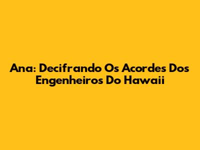Ana: Decifrando Os Acordes Dos Engenheiros Do Hawaii
