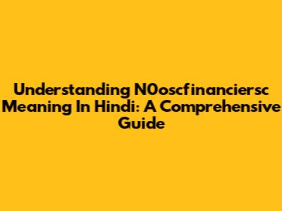 Understanding N0oscfinanciersc Meaning In Hindi: A Comprehensive Guide