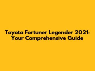 Toyota Fortuner Legender 2021: Your Comprehensive Guide
