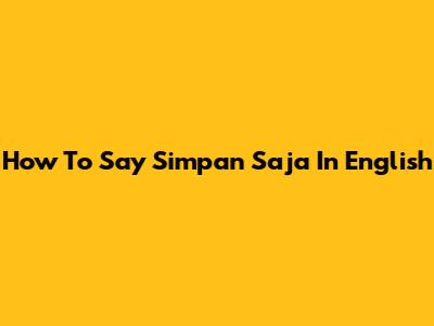 How To Say 'Simpan Saja' In English