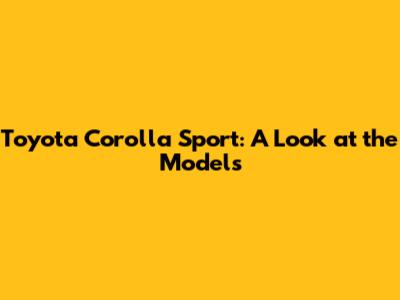 The Latest Corolla Sport Models
